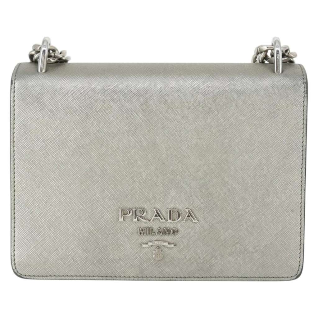 Prada Chain Flap Bag Silver Small Leather | Pre-Loved Luxury
