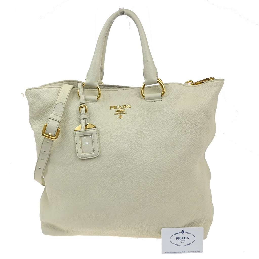 Prada Convertible Shopper Tote White X-Large Leather