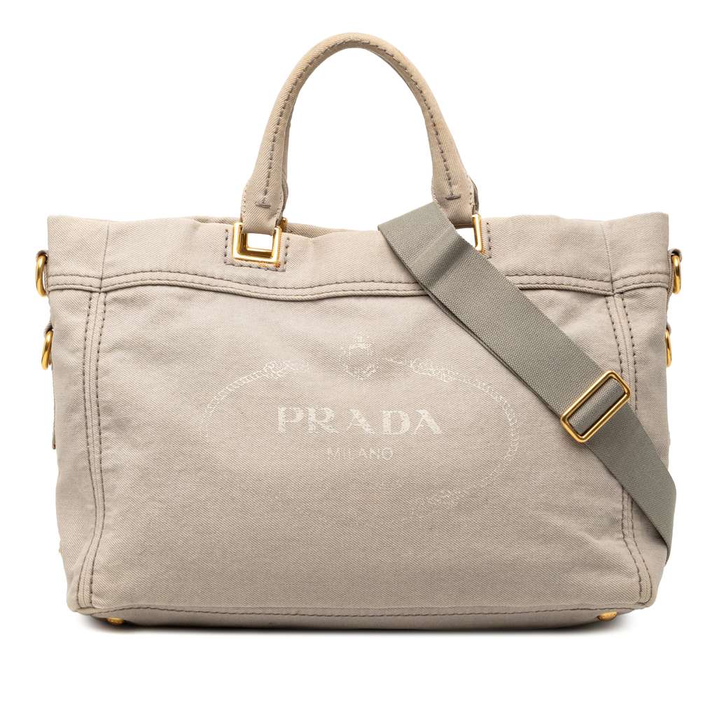Prada Denim Canapa Logo Satchel Brown X-Large Denim