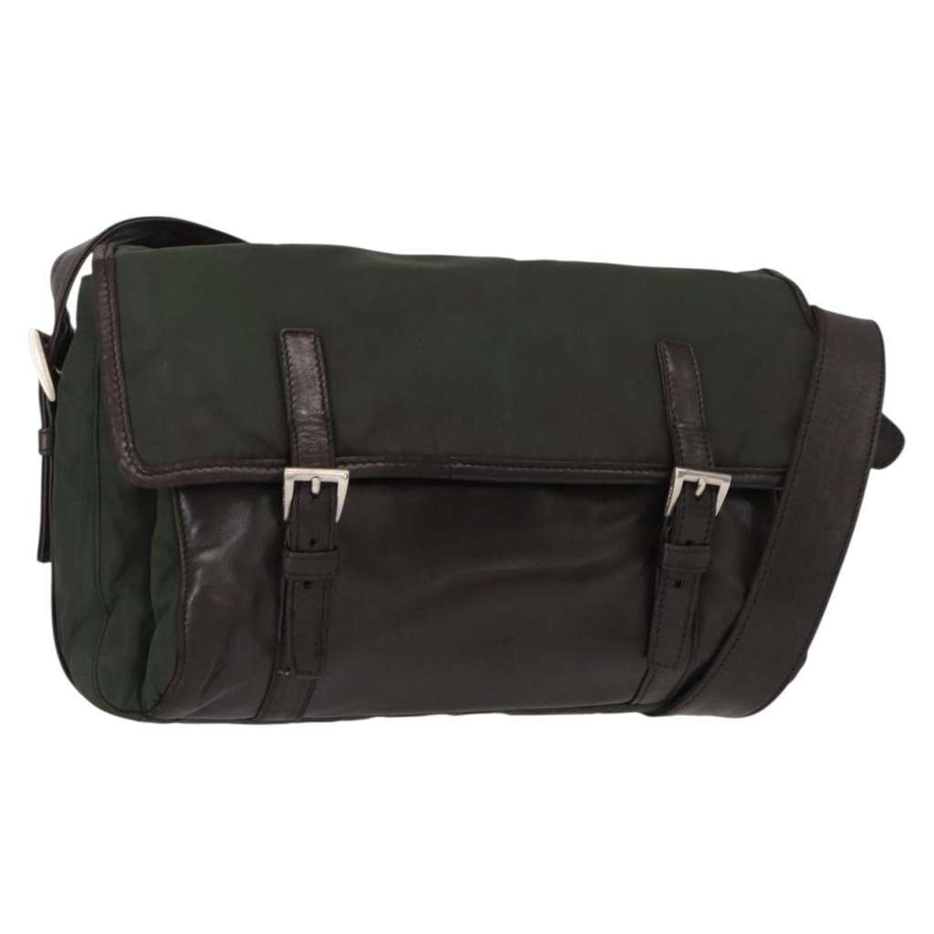 Prada Double Buckle Flap Messenger Bag Khaki Medium