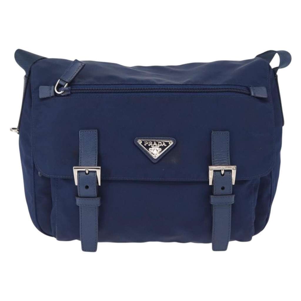 Prada Double Buckle Flap Messenger Bag Navy Medium