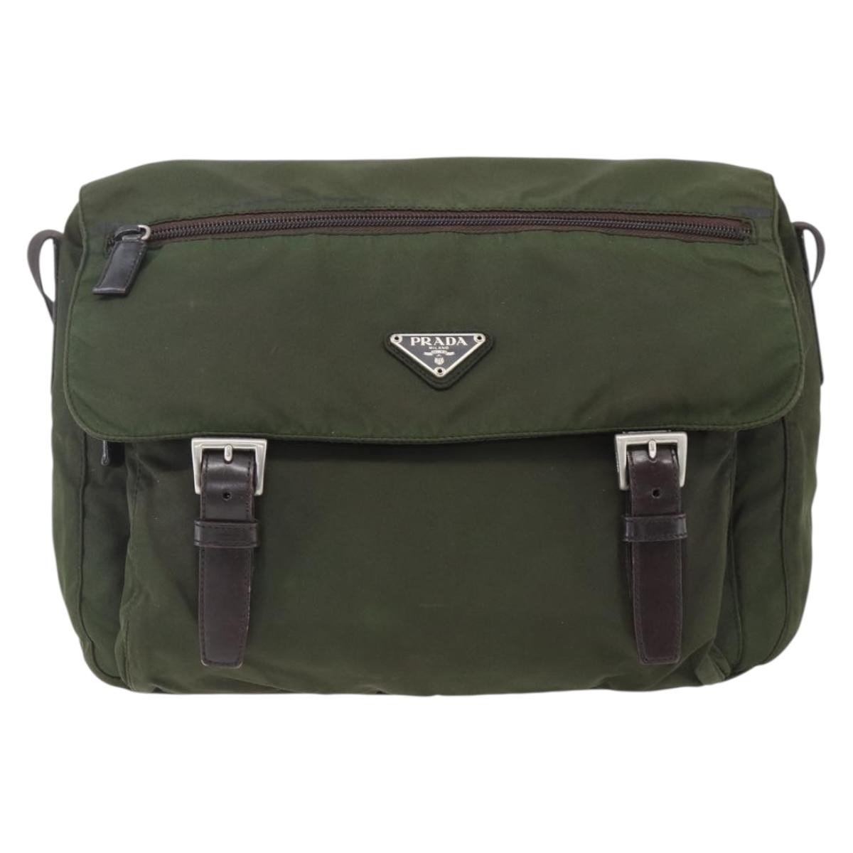 Prada Double Buckle Flap Messenger Bag Khaki Medium