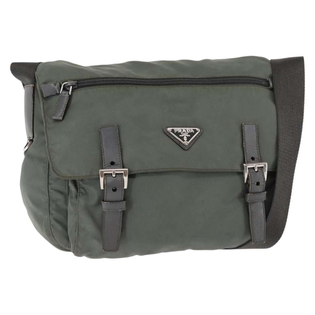 Prada Double Buckle Flap Messenger Bag Khaki Large