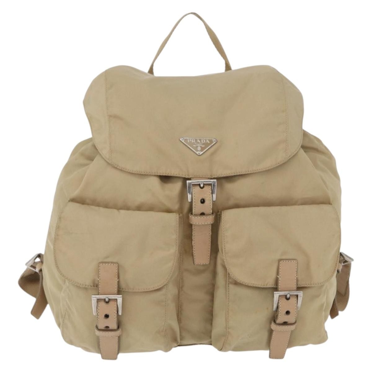 Prada Double Front Pocket Backpack Beige Medium | Pre-Loved