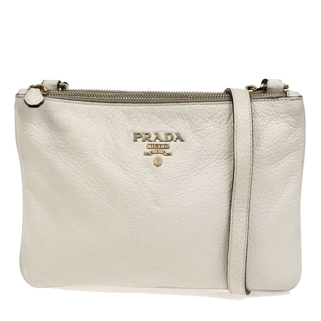 Prada Double Zip Crossbody Bag White Medium Leather
