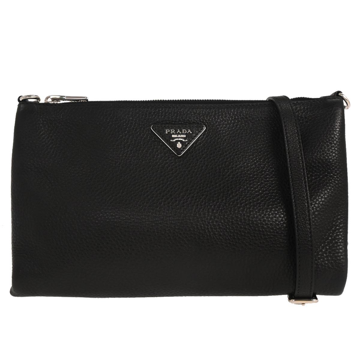 Prada Flat Zip Crossbody Bag Black Medium Leather | Pre-Love