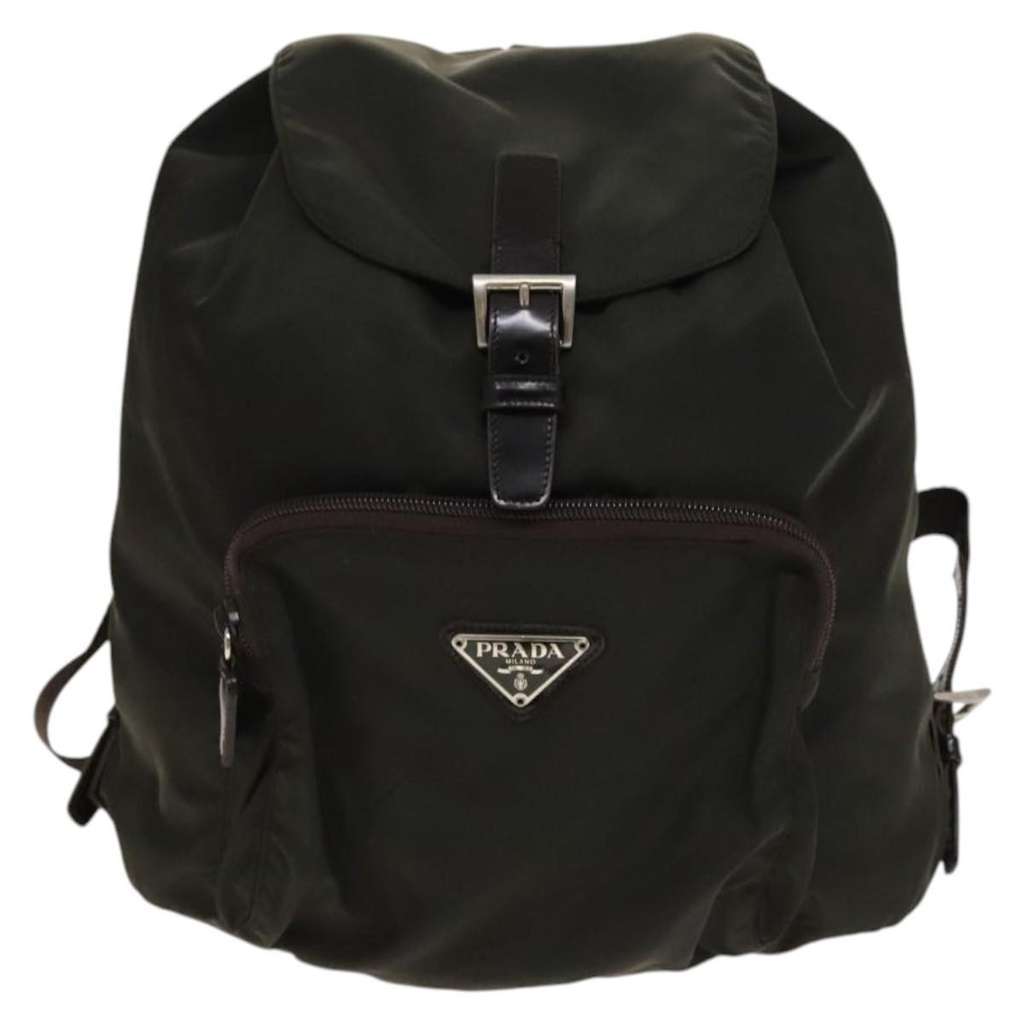 Prada Front Pocket Buckle Backpack Khaki Medium | Pre-Loved