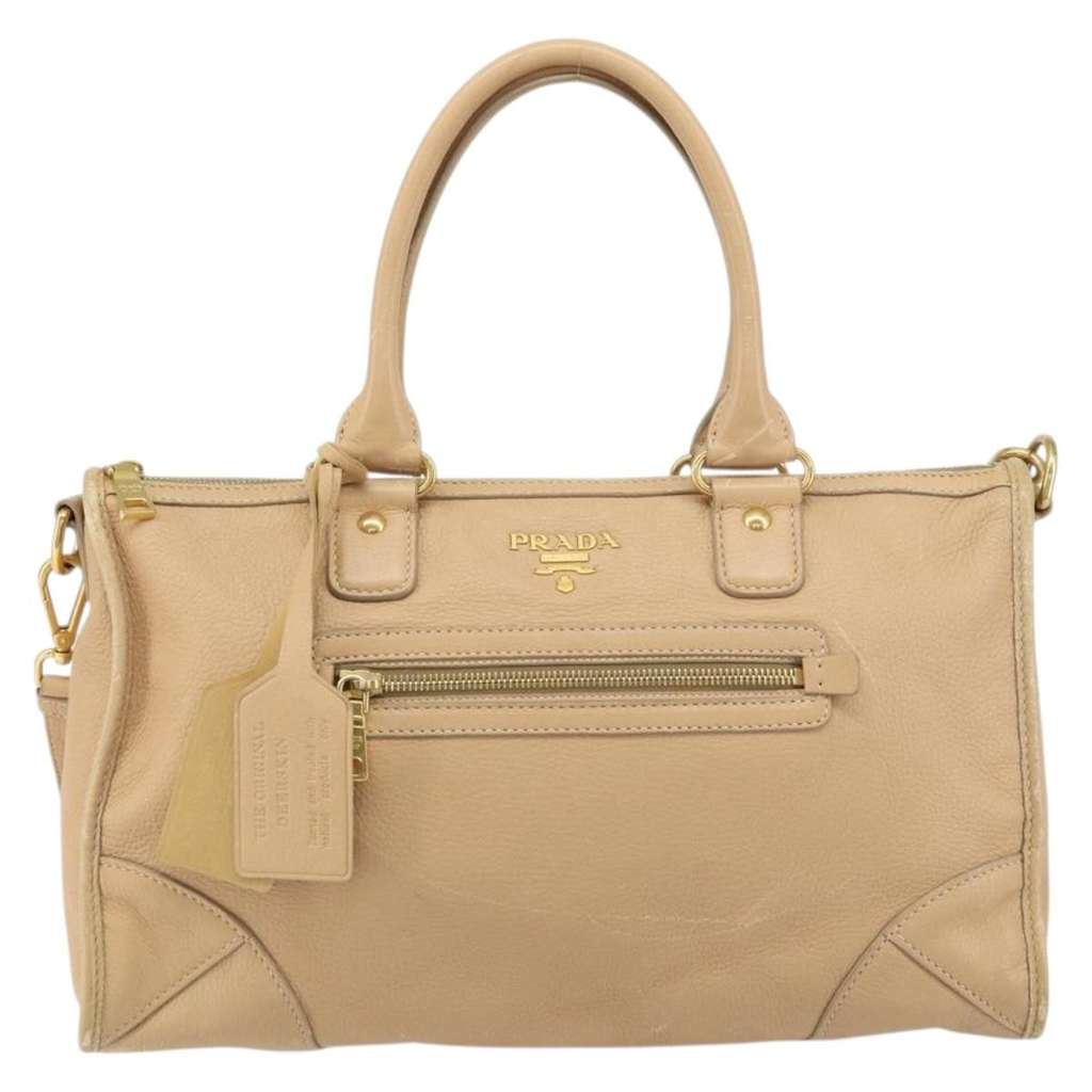 Prada Front Zip Convertible Satchel Beige X-Large Leather