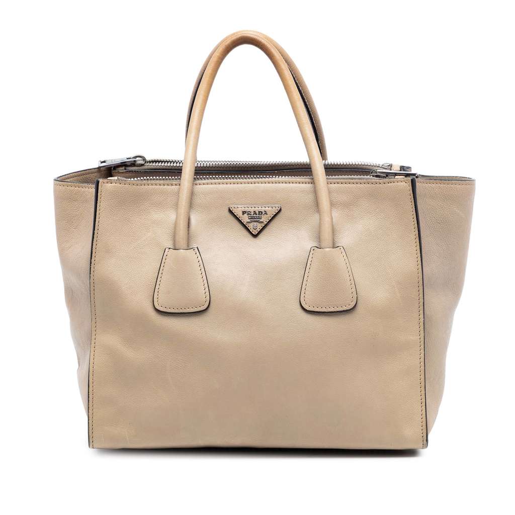 Prada Glace Calf Twin Pocket Double Handle Satchel Brown Lar