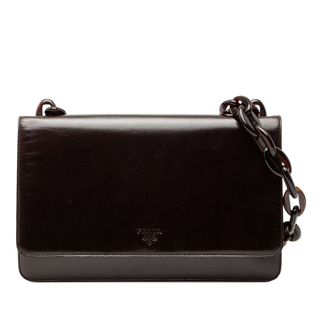 Prada Goatskin Madras Swing Chain Shoulder Bag Brown Medium