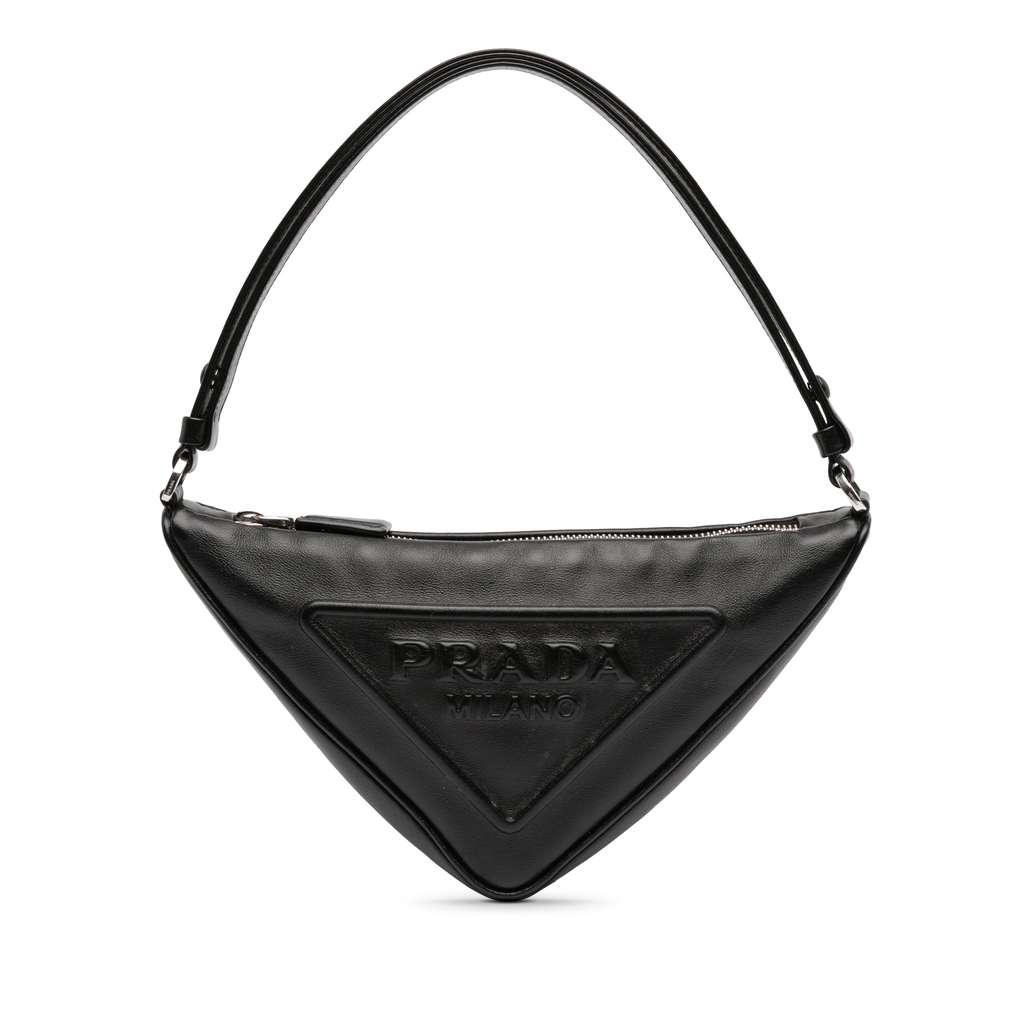 Prada Grace Lux Triangle Satchel Black Medium Leather