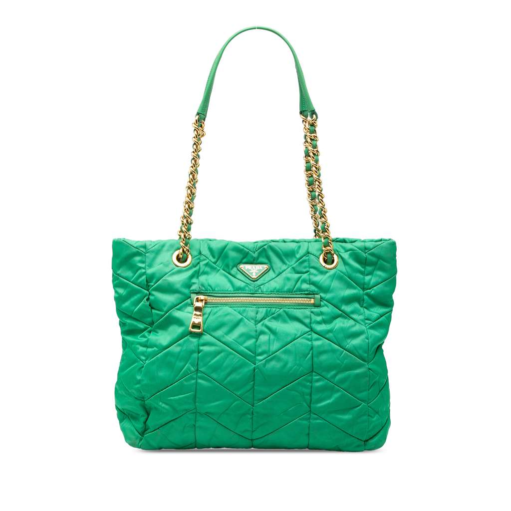 Prada Impuntu Tessuto Chain Tote Green Large | Pre-Loved Lux