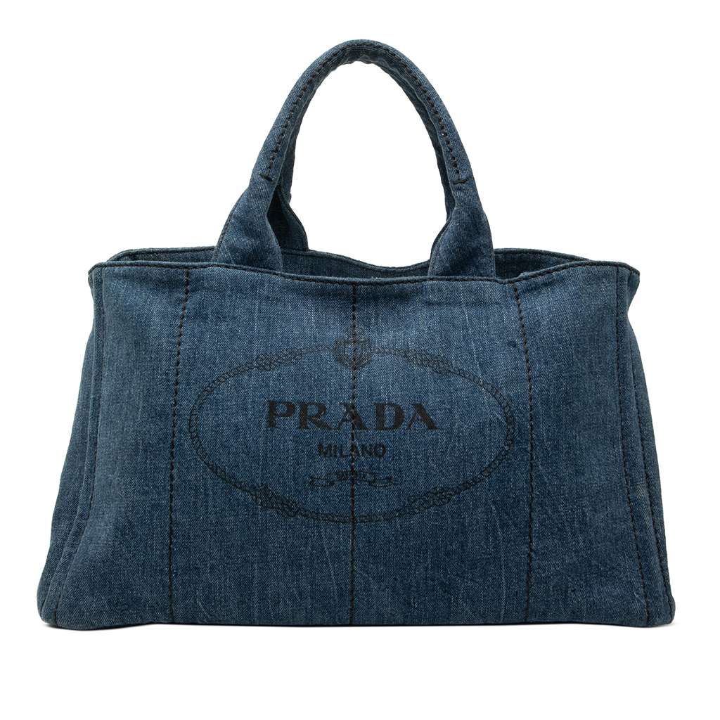 Prada Large Denim Canapa Logo Satchel Blue X-Large Denim