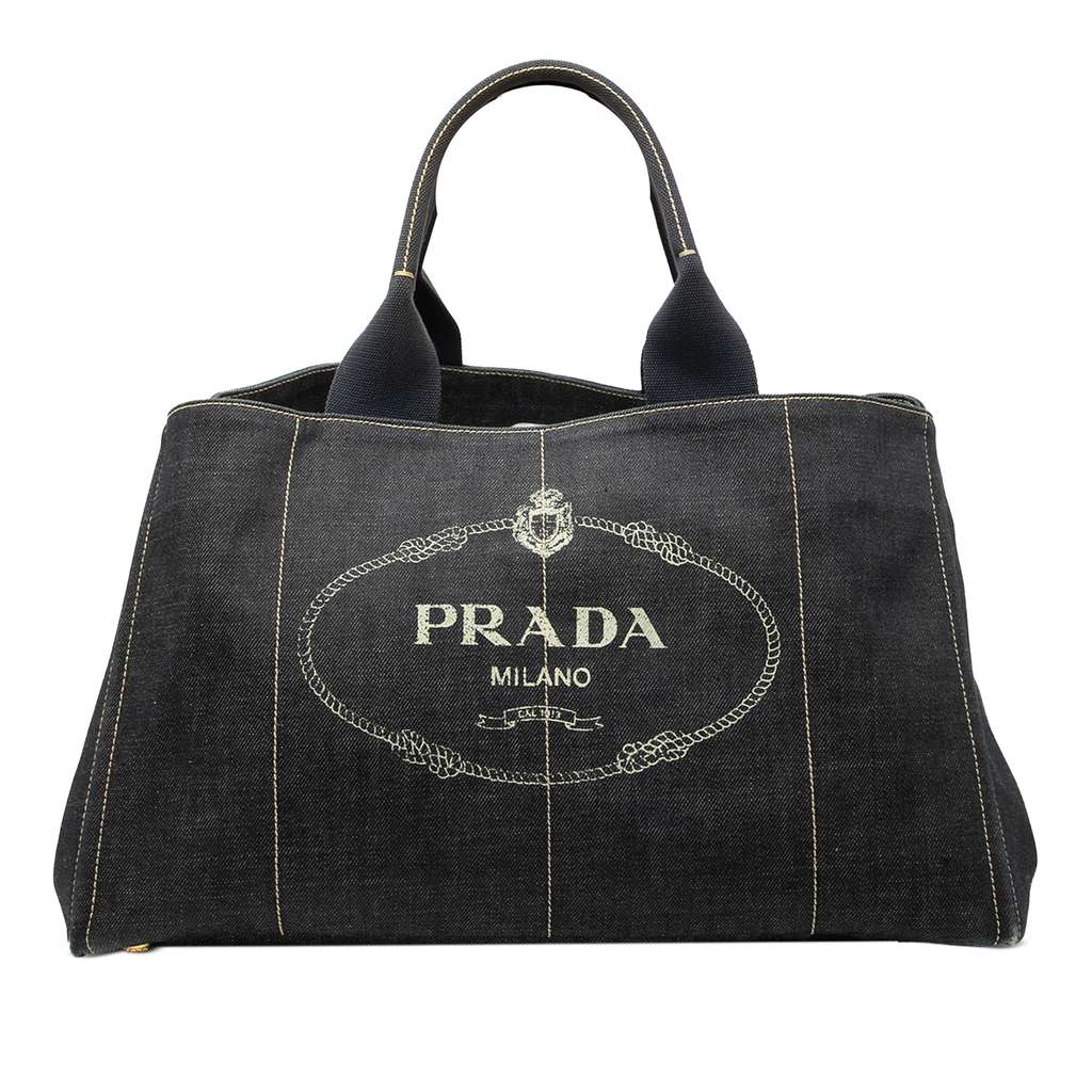 This satchel features a denim body, rolled handles, an open top, and interior zip and slip pockets.