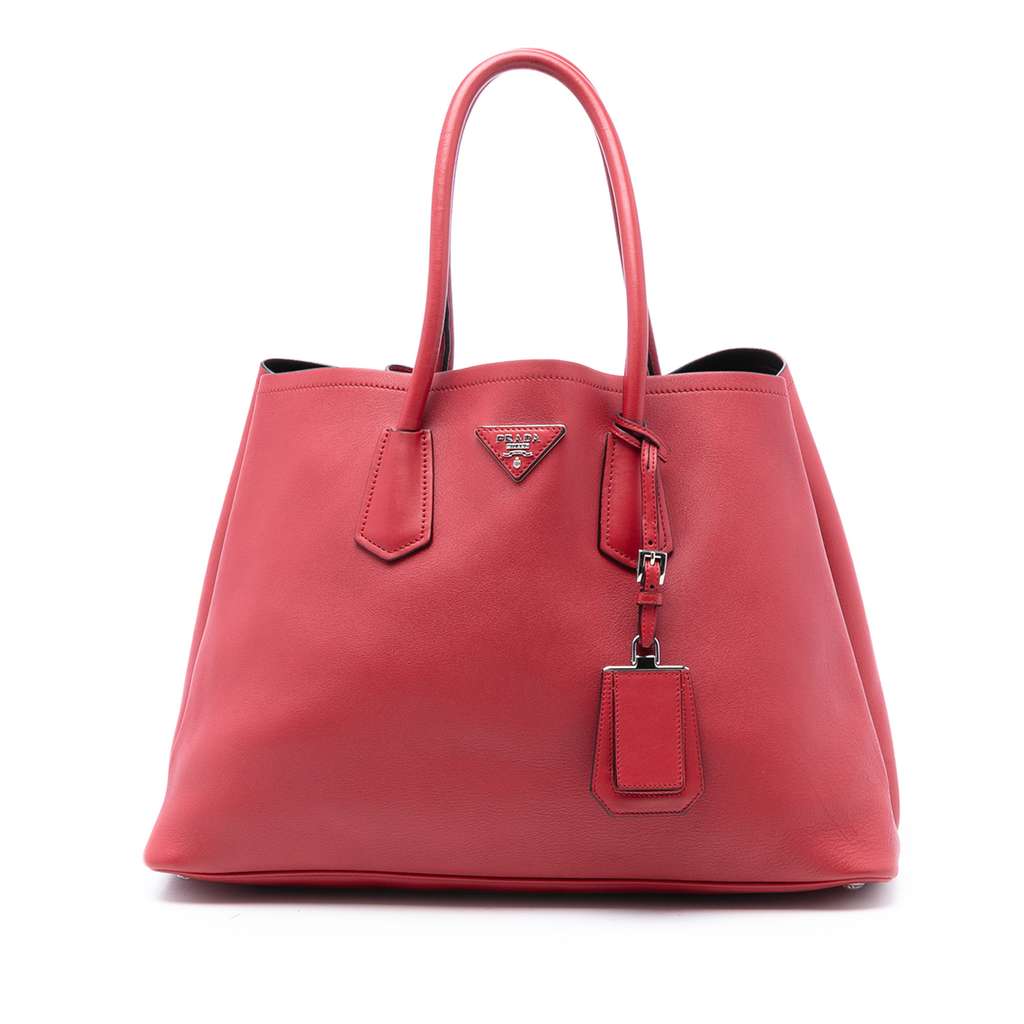 Prada Large Saffiano Cuir Double Satchel Red X-Large Leather