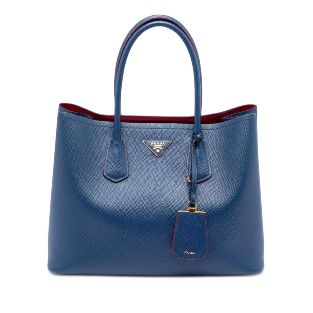 Prada Large Saffiano Cuir Double Satchel Blue X-Large Leathe