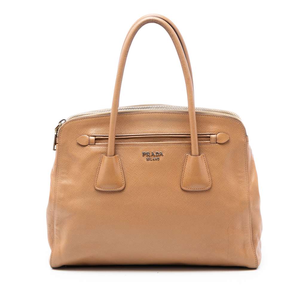 Prada Large Saffiano Cuir Double Zip Top Handle Bag Brown X-