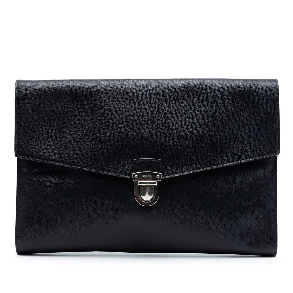 Prada Large Saffiano Envelope Pushlock Clutch Black X-Large