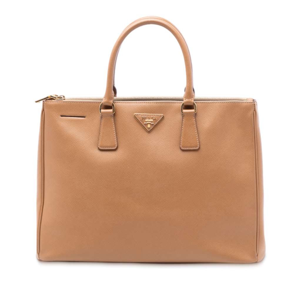 Prada Large Saffiano Lux Galleria Double Zip Tote Brown X-La