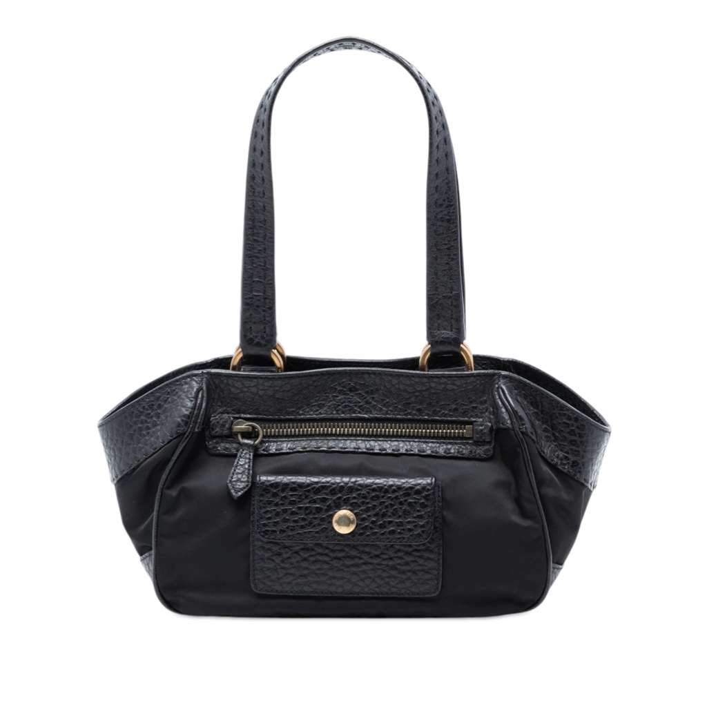 Prada Leather Trimmed Tessuto Front Flap Pocket Shoulder Bag
