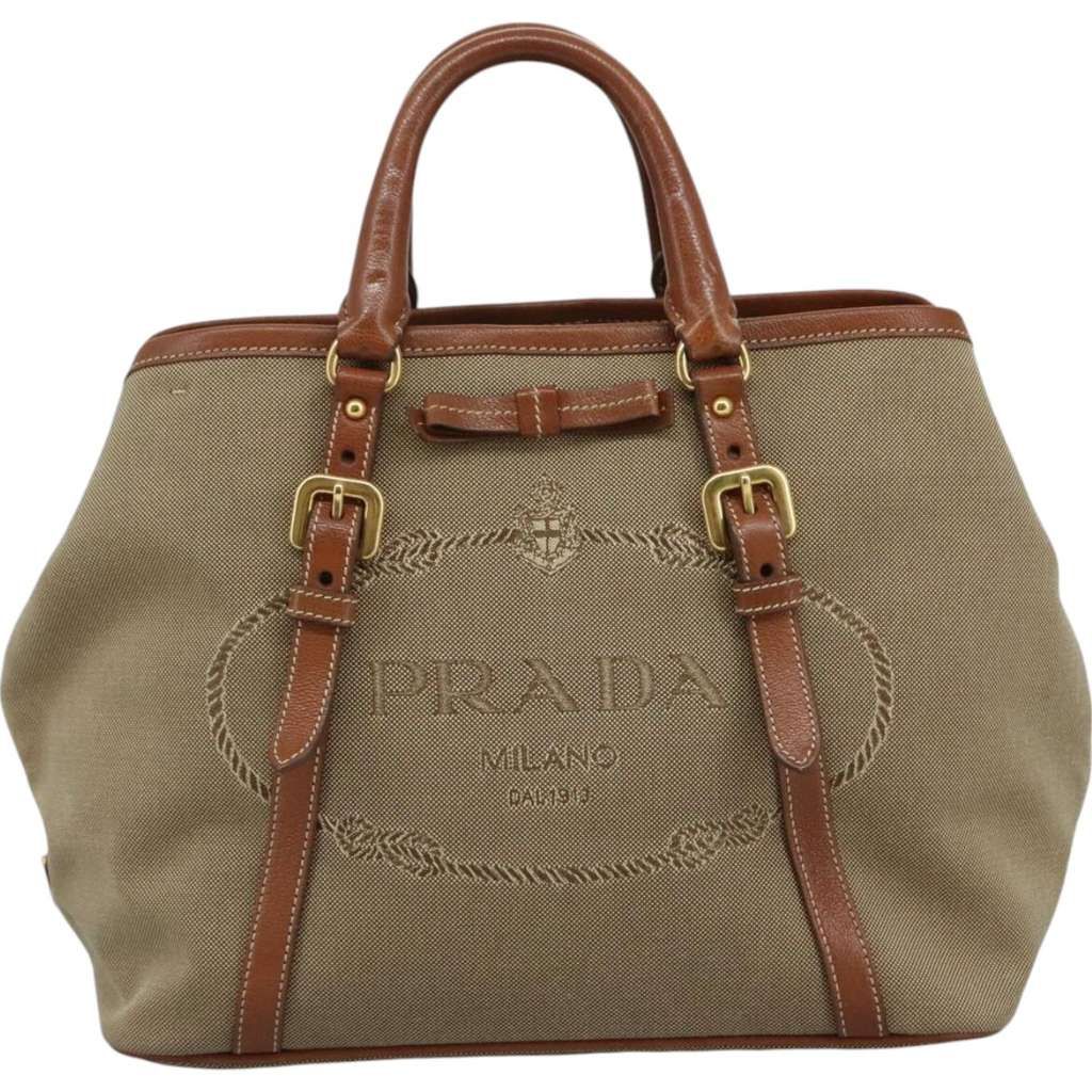 Prada Logo Convertible Tote Beige Medium Canvas | Pre-Loved