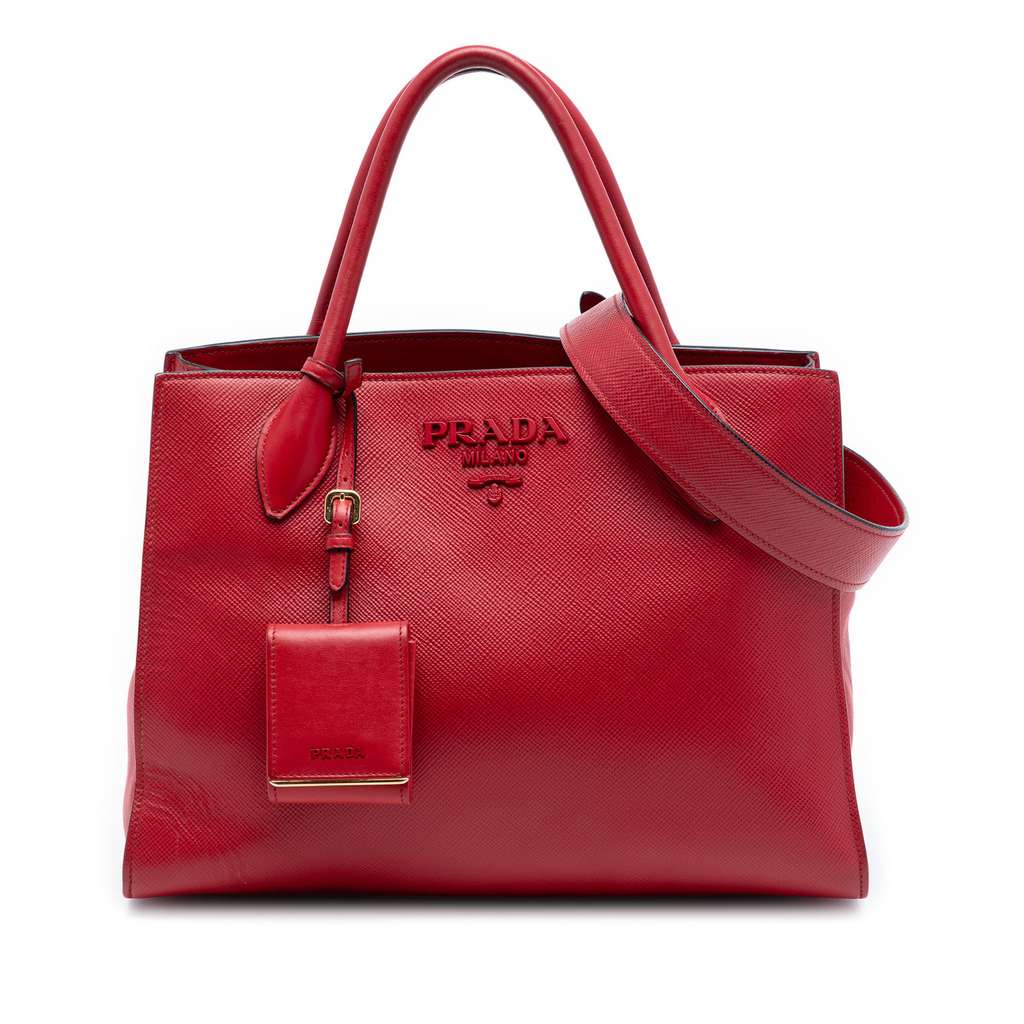 Prada Medium Saffiano Cuir Monochrome Top Handle Tote Red La