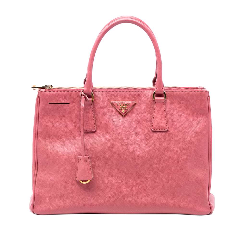 Prada Medium Saffiano Lux Galleria Double Zip Satchel Pink L