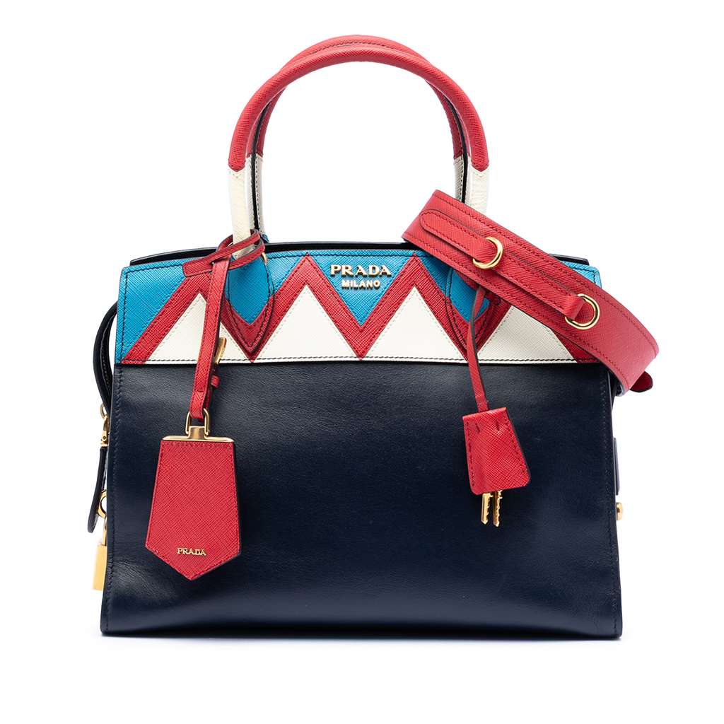 Prada Medium Saffiano Trimmed City Calf Greca Esplanade Satc