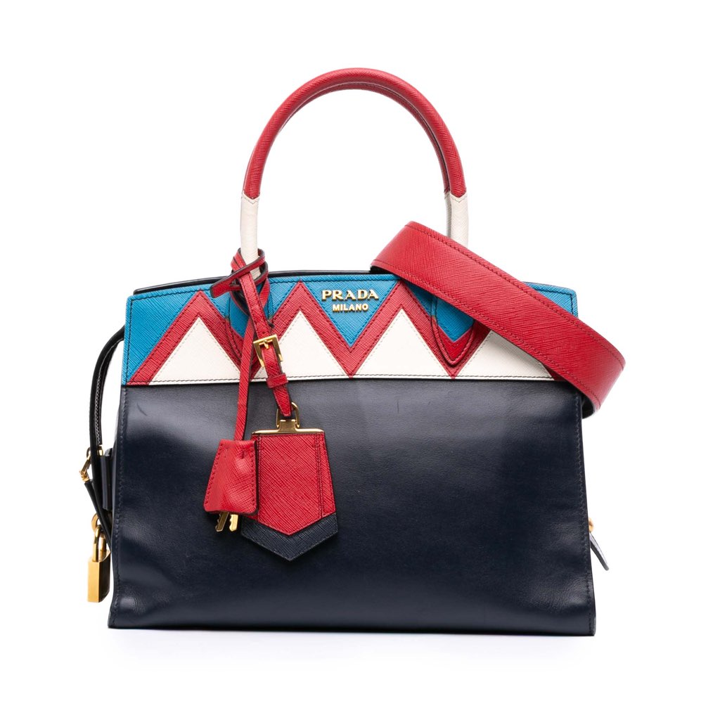 The Esplanade satchel features a leather body, rolled saffiano leather handles, a detachable flat leather shoulder strap, a top zip closure, and interior zip and slip pockets.