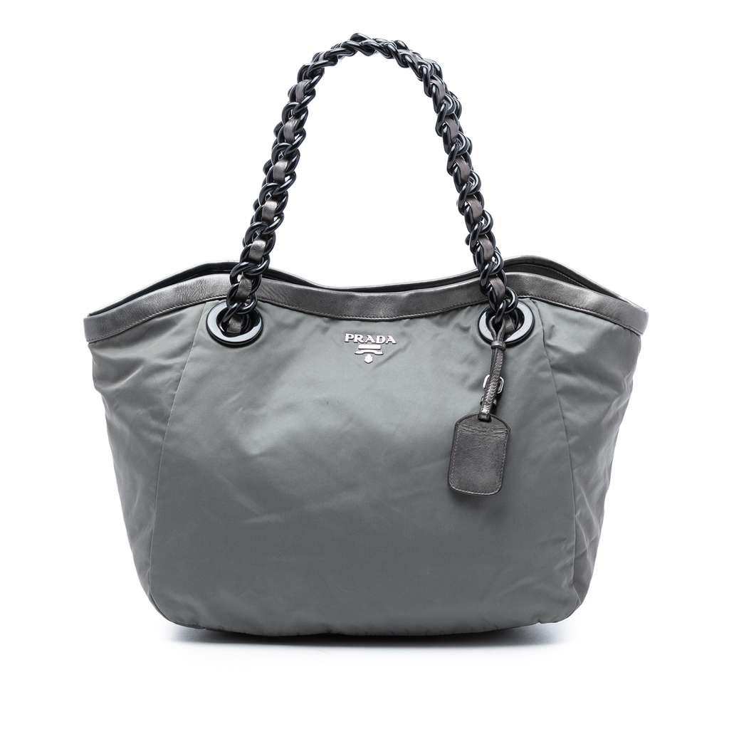 Prada Metallic Leather Trimmed Tessuto Tote Grey X-Large