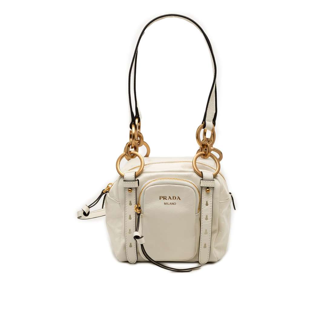 Prada Mini Soft Calfskin Dangle Top Handle Bag White Mini Le