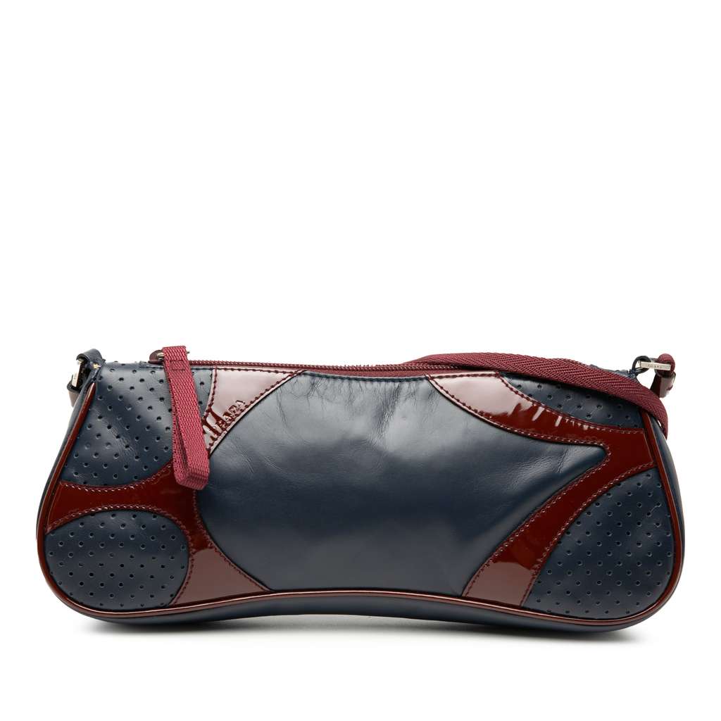 Prada Patent Trimmed Vitello Drive Crossbody Blue Medium Lea