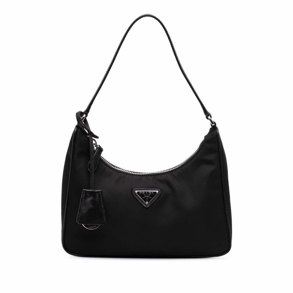 The Re-Edition shoulder bag features a nylon body, a flat strap, and a top zip closure.