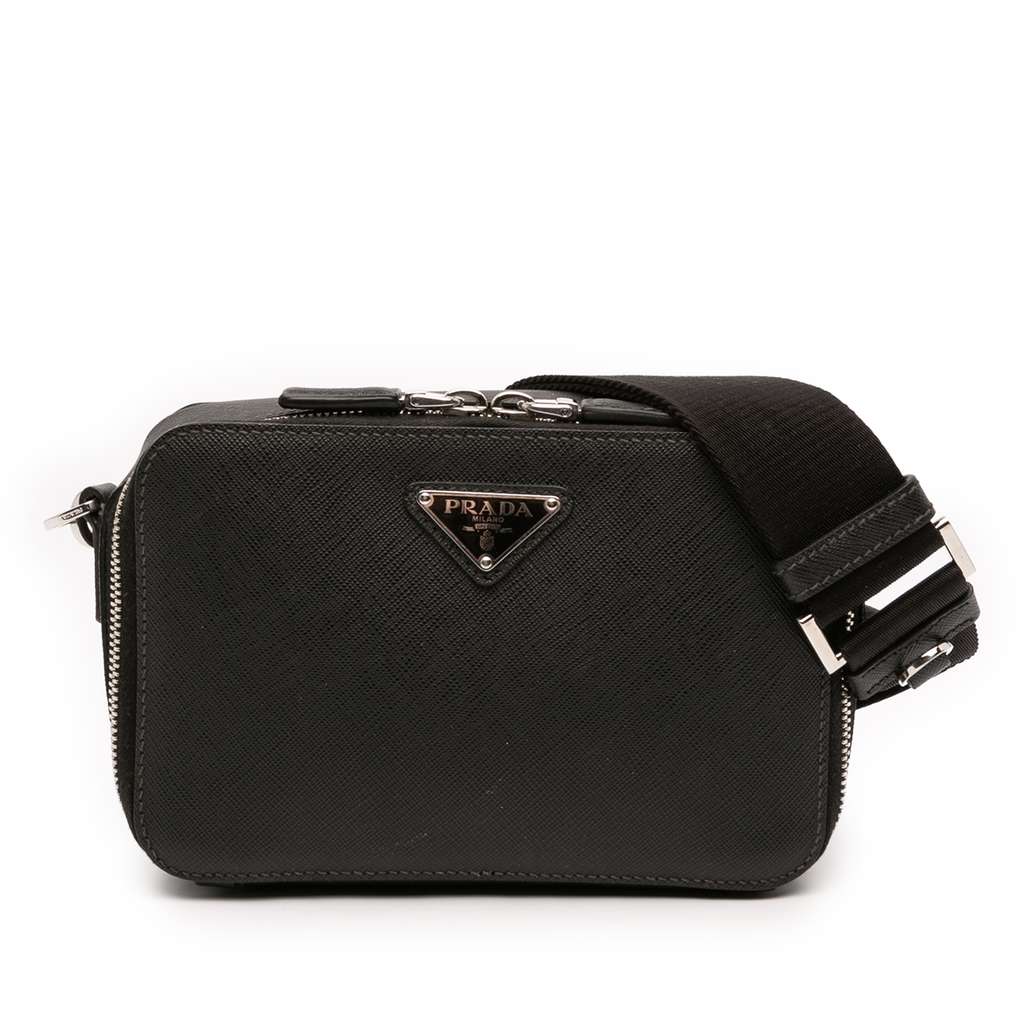 Prada Saffiano Brique Crossbody Black Mini Leather