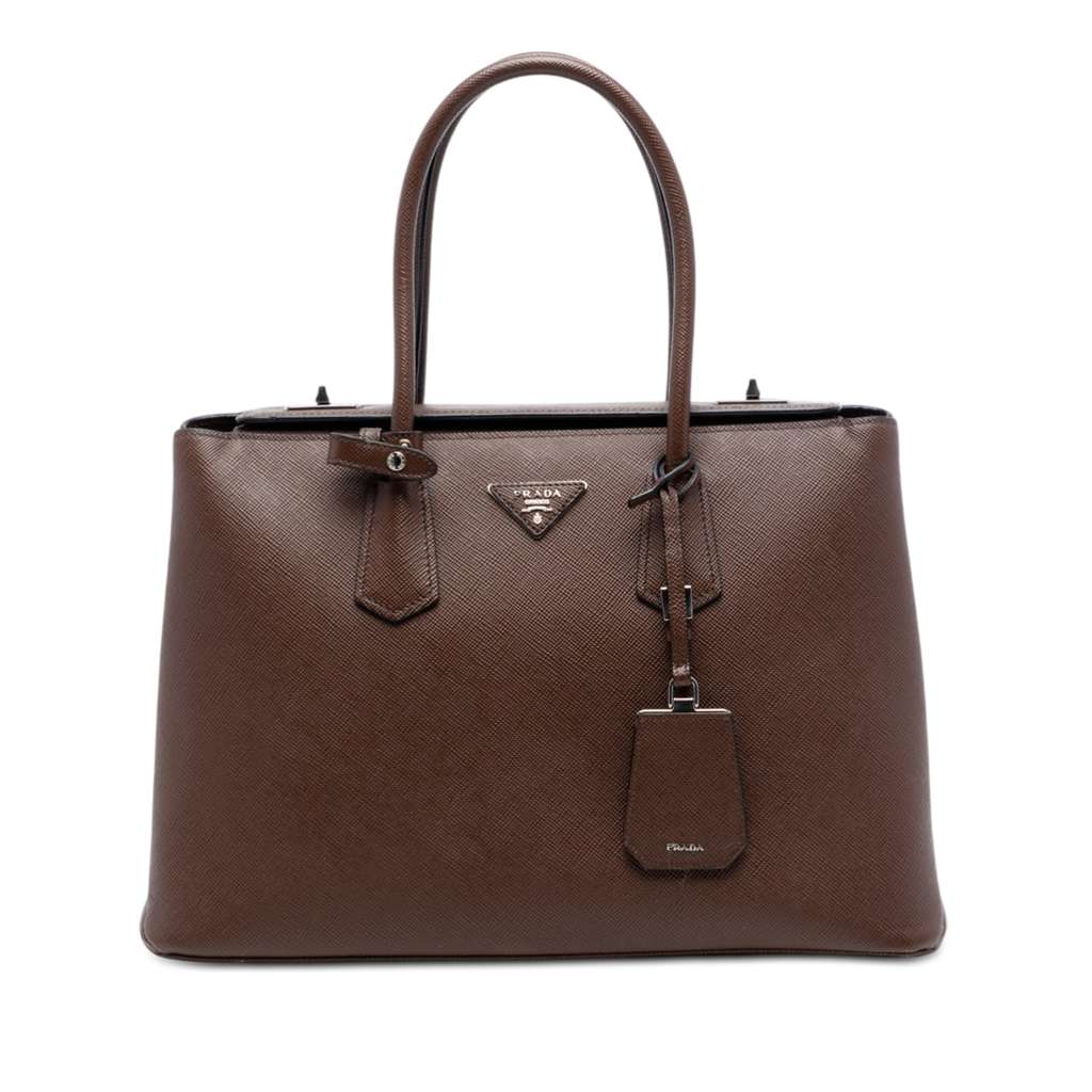 Prada Saffiano Cuir Turnlock Twin Satchel Brown X-Large Leat