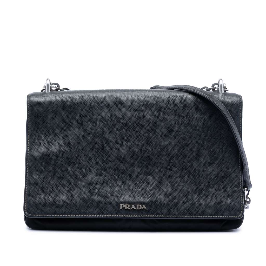Prada Saffiano Lux and Tessuto Chain Crossbody Black Large L