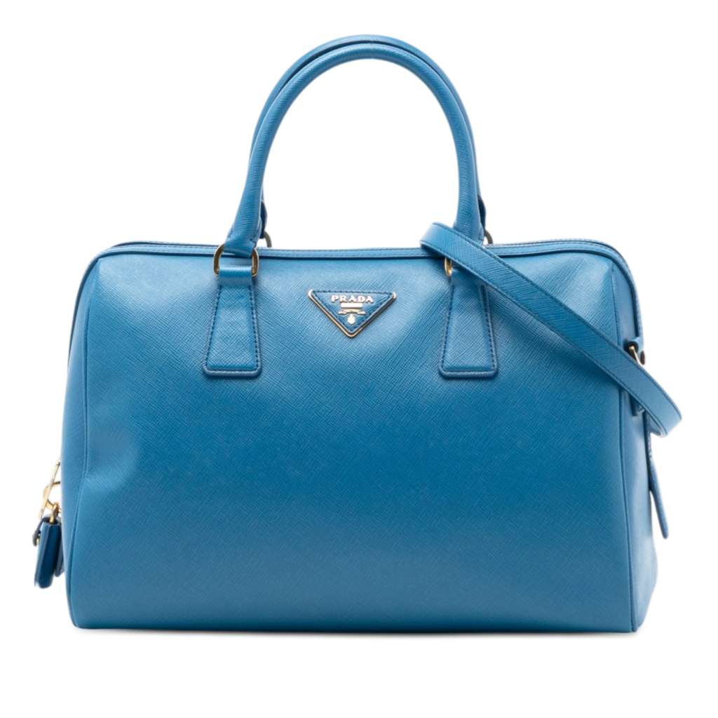 Prada Saffiano Lux Boston Bag Blue Large Leather | Pre-Loved