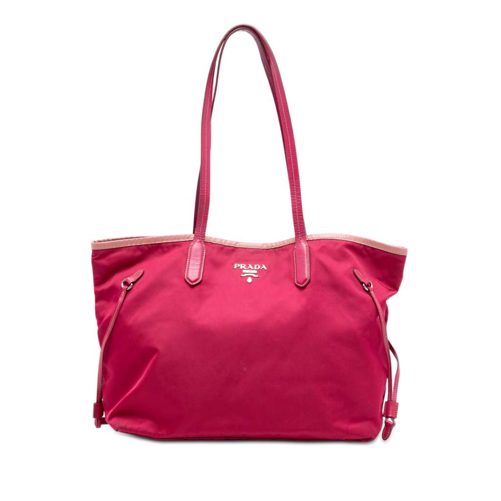 Prada Saffiano Trimmed Tessuto Open Convertible Tote Pink La