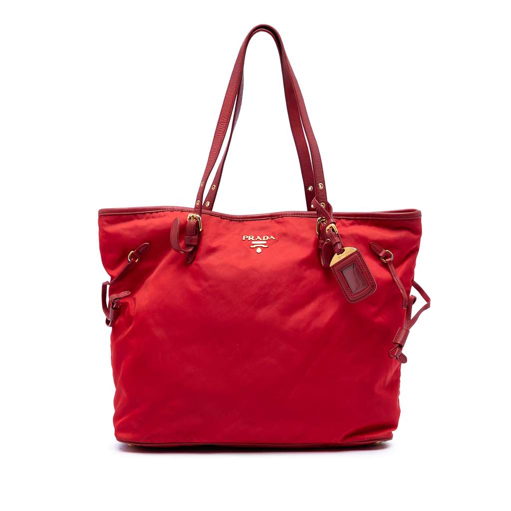 Prada Saffiano Trimmed Tessuto Tote Red X-Large | Pre-Loved