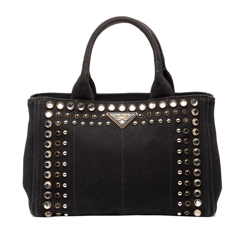 Prada Small Canvas Canapa Bijoux Satchel Black Medium Canvas