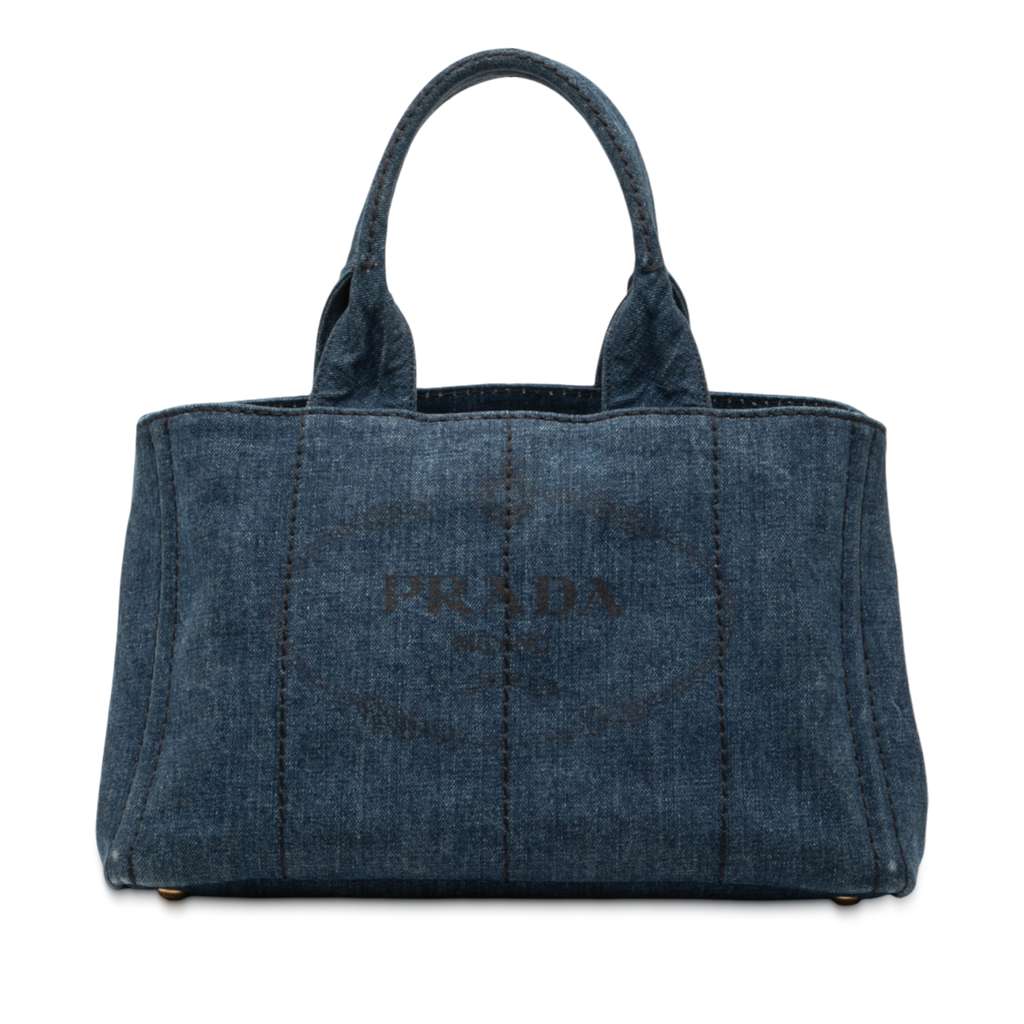 This satchel features a denim body, flat top handles, a detachable strap, an open top, and interior zip and slip pockets.