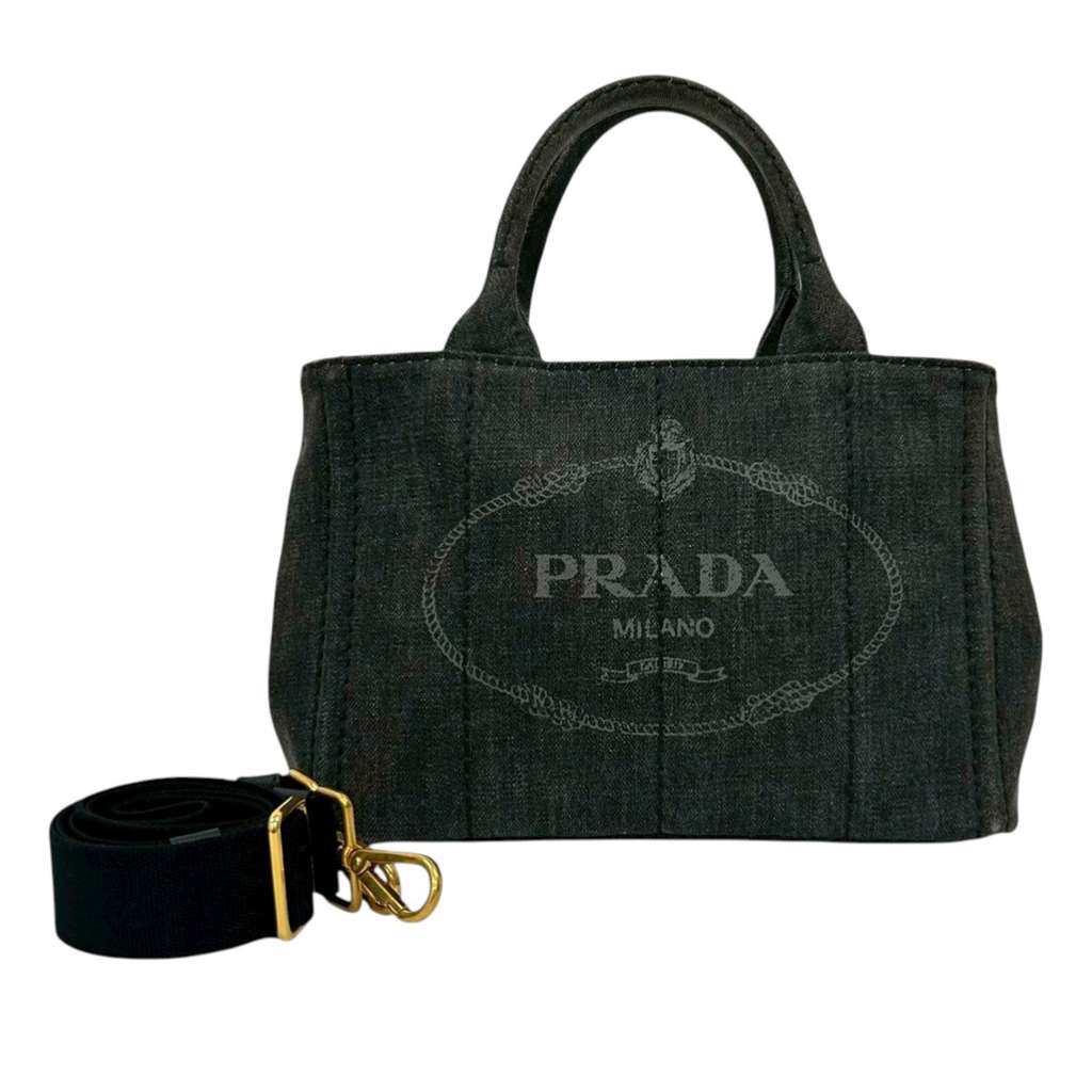 Prada Small Denim Canapa Logo Satchel Black Medium Denim