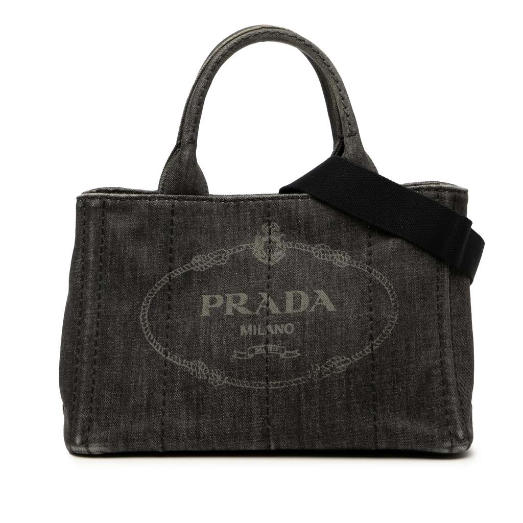 This satchel features a denim body, rolled handles, detachable flat strap, an open top, and interior zip and slip pockets.