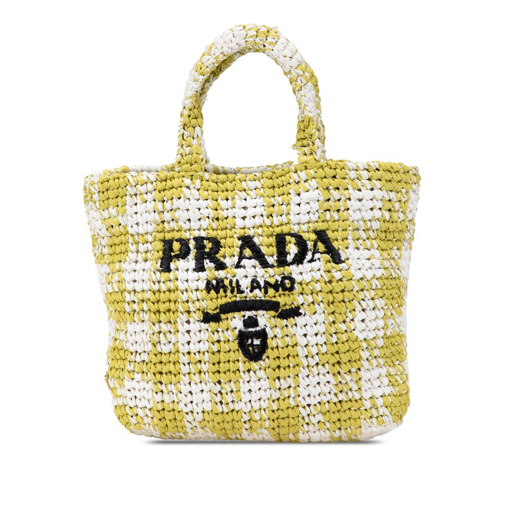 This tote bag features a woven raffia body, rolled raffia handles, and an open top.