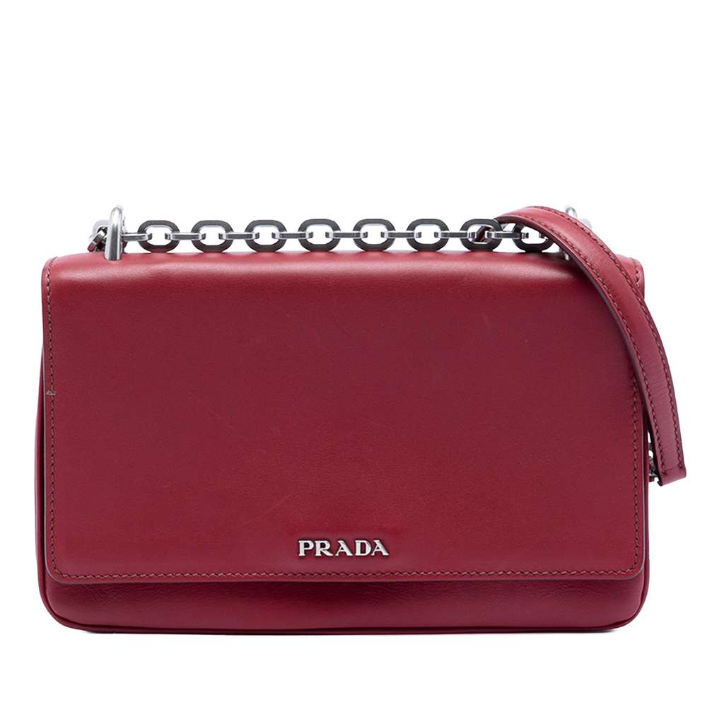 Prada Soft Calf Chain Crossbody Red Small Leather | Pre-Love