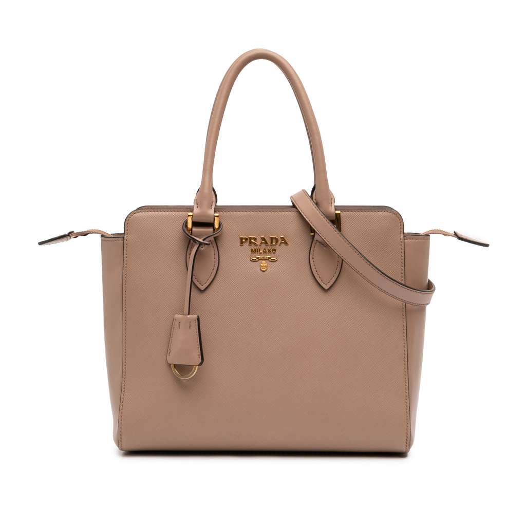 Prada Soft Calf Trimmed Saffiano Lux Zip Convertible Tote Br