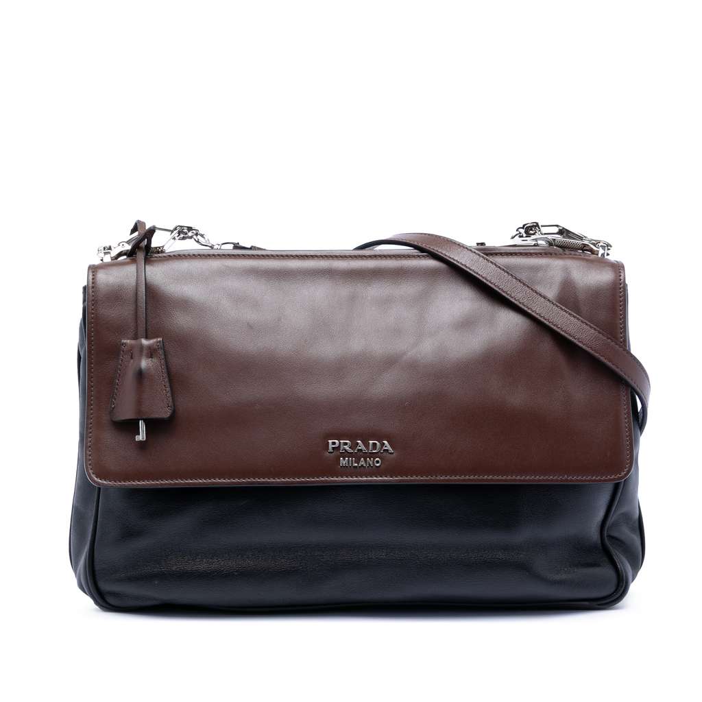 Prada Soft Calfskin Double Sided Flap Messenger Bag Black La