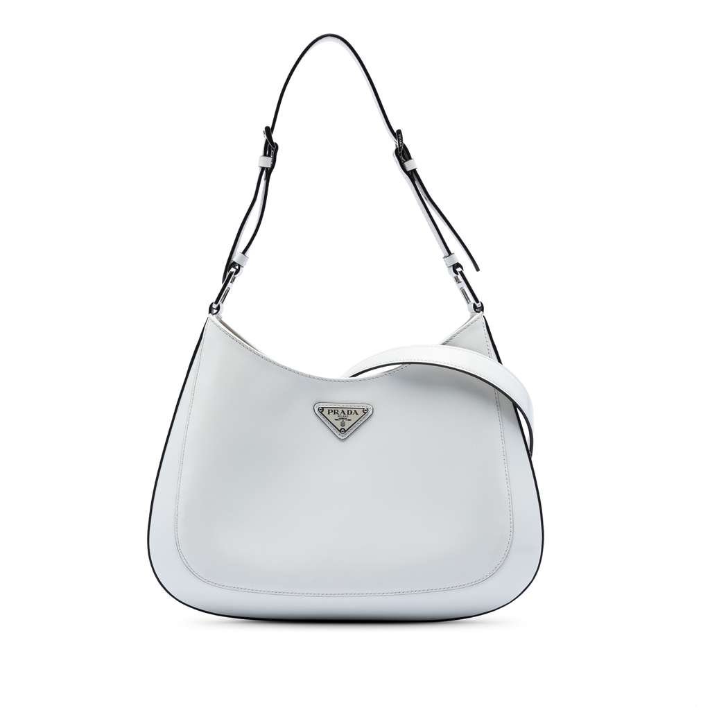 Prada Spazzolato Cleo Shoulder Bag White Large Leather