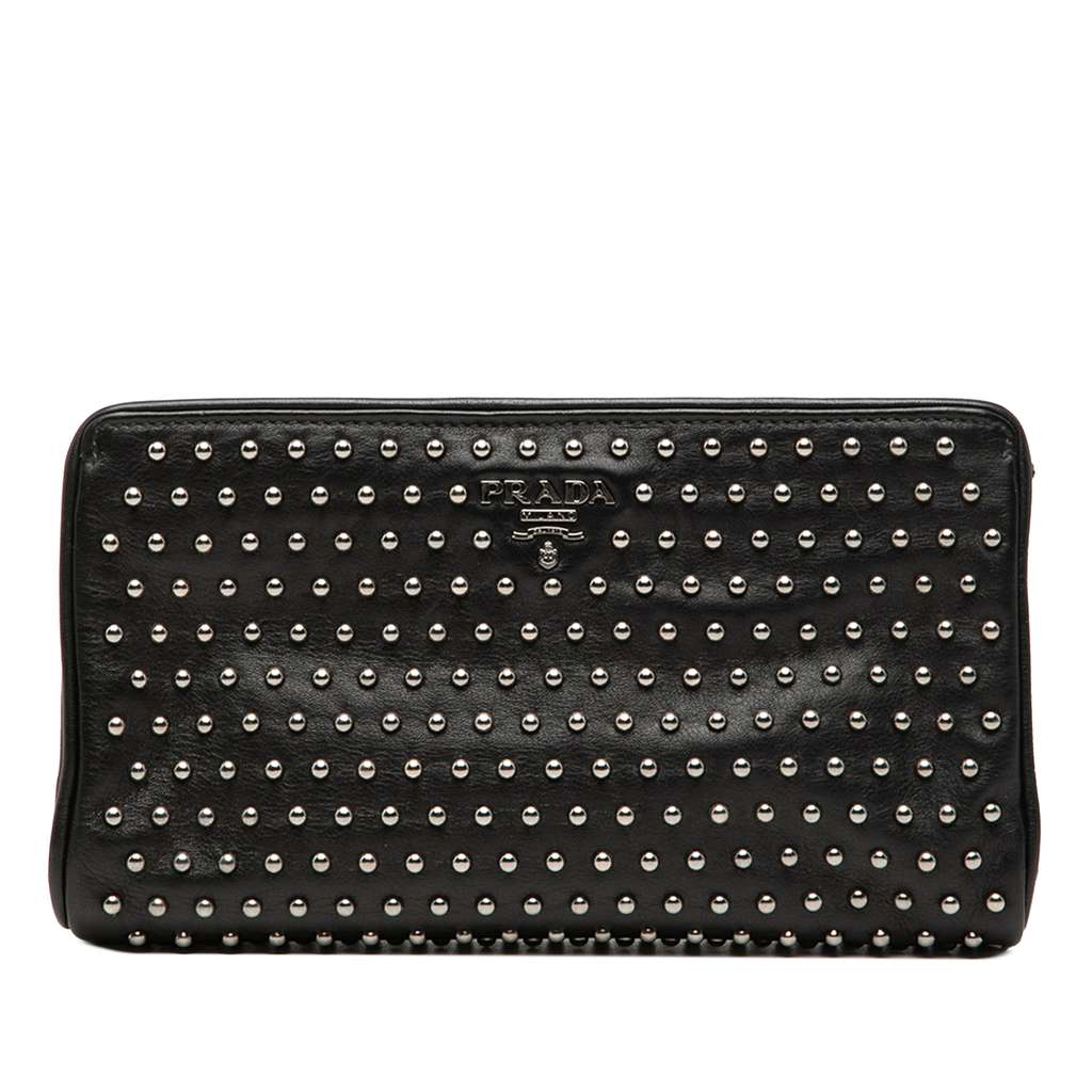 Prada Studded Leather Clasp Clutch Black Small Leather