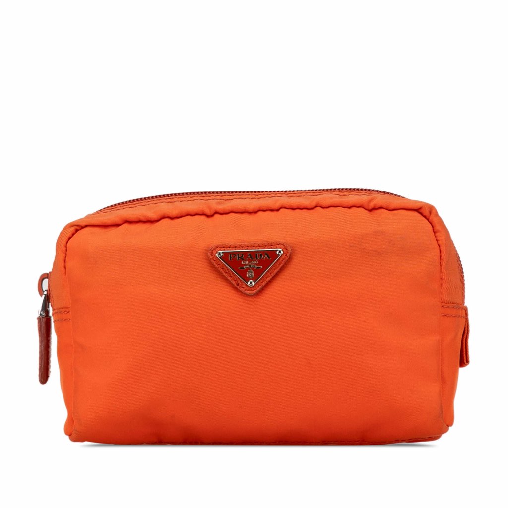 This pouch features a nylon body, a top zip closure, and an interior zip pocket.
